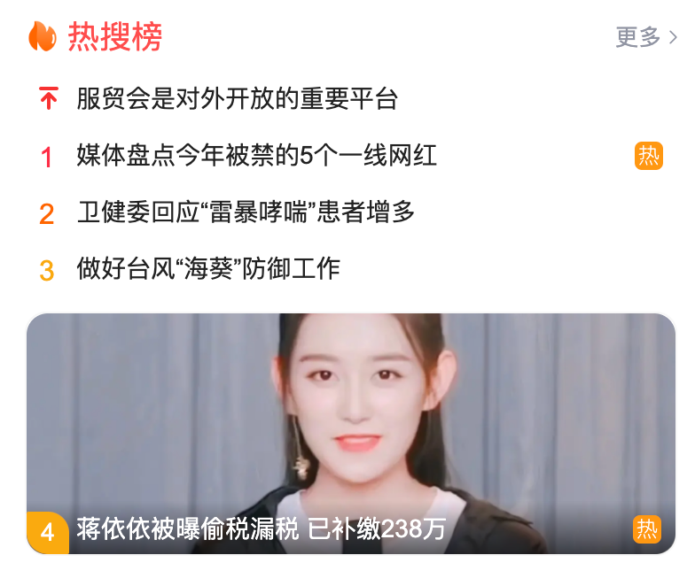 9月3日晚间,一则关于“蒋依依被曝偷税漏税,已补缴238万”的话题冲上热搜,并一度成为热搜爆词。