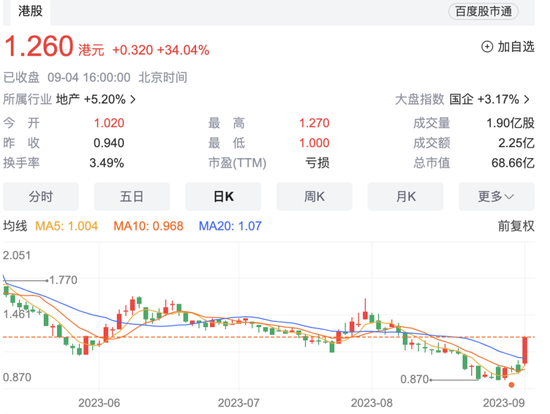 今日内房股齐涨,融创中国大涨34.04%,龙湖集团涨8.35%,华润置地涨9.95%,碧桂园涨14.61%。