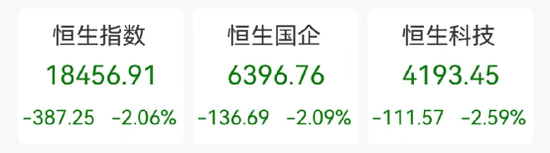 9月5日,港股低开低走,午后跌势进一步扩大。恒生指数收跌2.06%,报18456.91点,恒生科技指数跌2.59%,报4193.45点,恒生国企指数跌2.09%,报6396.76点。大市成交1014.99亿港元,南向资金净买入119.98亿港元。