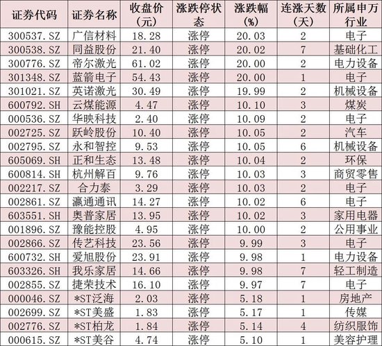 具体来看,今日,光伏概念股集体反弹,其中,BC电池板块领涨,永和智控等6只概念股涨停;TOPCON电池板块表现强势,帝尔激光等3只概念股涨停;光刻胶股全天强势,广信材料、同益股份涨停;消费电子概念股盘中异动,传艺科技等4只概念股涨停;华为概念股继续活跃,捷荣技术等3只概念股涨停;HJT电池、电子化学品、电子纸、钙钛矿电池、存储芯片、光学光电子、厨卫电器、电力等板块表现活跃。房地产服务板块领跌,租售同权、房地产开发、传媒等板块跌幅居前。