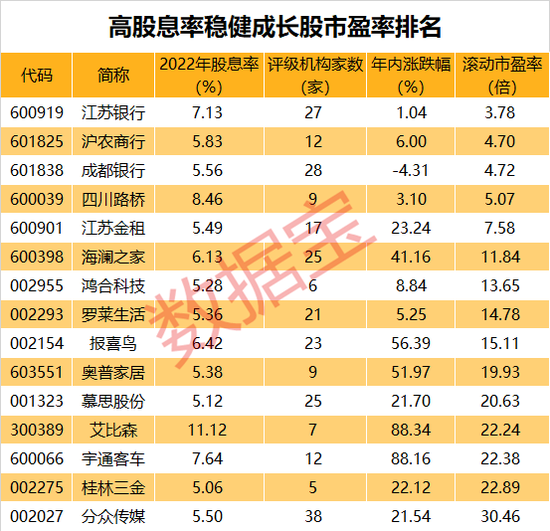 数据宝梳理出股息率较高、未来有望持续稳健成长的个股,以飨读者,筛选条件如下: