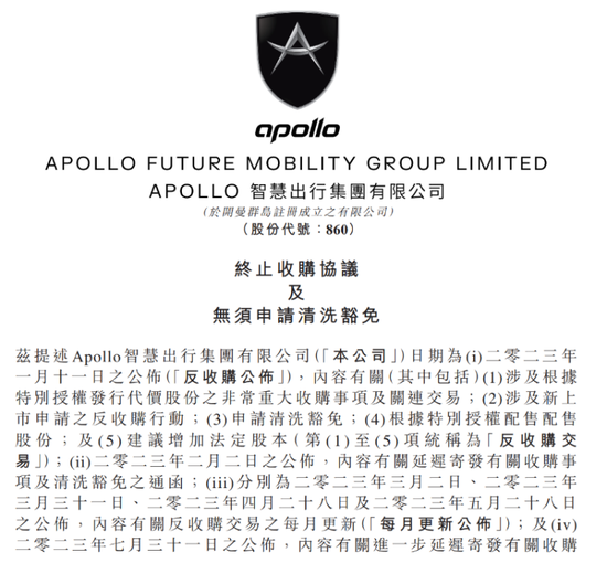 APOLLO出行在8日的公告中提到,考虑到全球市况动荡及地缘政治冲突、金融市场氛围持续不确定及疫情后短期经济复苏等其他商业因素,交易买方、卖方及公司已相互同意订立终止契据以终止收购协议,因此收购事项及配售事项将不会进行。