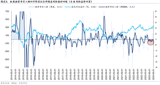 近期A股资金面受到外资波动影响,但趋势项上ETF净申购和公募新发基金稳步修复。截至9月8日当周,两融余额1.57万亿元,融资活跃度6.1%,是活跃市场的重要力量,融资保证金比例下调落地后或吸引增量投资者参与融资交易,进一步提振资金面和市场信心。复盘16年以来行情,近1个月融资活跃度低位(<8%)回暖是A股底部信号,且融资净买入额回升阶段往往伴随着风险溢价回落(风险偏好回升)。当前全A风险溢价再度回踩1年均值上方1.5x标准差附近的极端位置,随着政策“组合拳”落地,市场交投情绪有望回暖,投资者低位布局的性价比在提升。