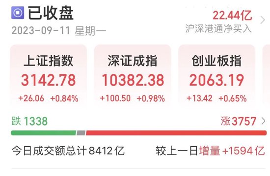 受社会融资超预期刺激,A股午后强势反弹,上证指数、深证成指、沪深300指数、创业板指、科创50等指数午后开盘均出现跳涨情形。以上证指数为例,11:30收盘时涨幅不到0.6%,午后开盘2分钟,该指数直接涨幅拉升至1.1%以上。
