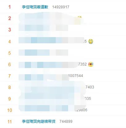 该消息迅速登上热搜首位,热度“爆”。不光#李佳琦哭着道歉#上了热搜,#李佳琦哭完继续带货#话题也同样上了热搜。