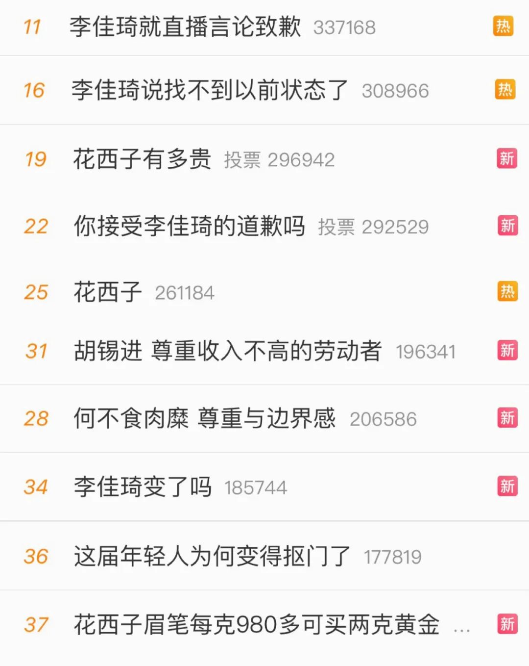 除了李佳琦,花西子也在这一事件中成了众矢之的。网络上“花西子 打工人专属货币单位”等微博热搜话题不断,引发了“花西子有多贵”“花西子付给李佳琦多少佣金”等等质疑声。