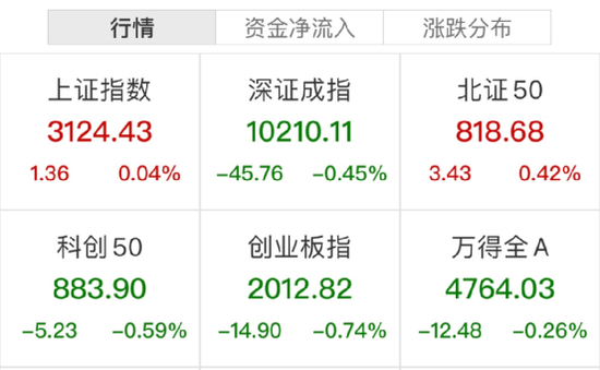 一起来看下上午的市场情况。今日三大指数涨跌不一,截至午间收盘,沪指涨0.04%,深成指跌0.45%,创业板指跌0.74%。