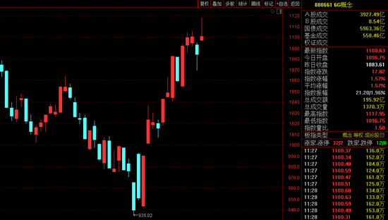 实际上8月底以来,6G概念就连续强势上攻,累计涨逾20%,远远超过同期大盘走势。在6G概念强势的带动下,电信运营、通信设备、卫星导航等相关板块纷纷走强,大富科技、武汉凡谷(维权)、华脉科技等涨停或涨超10%。
