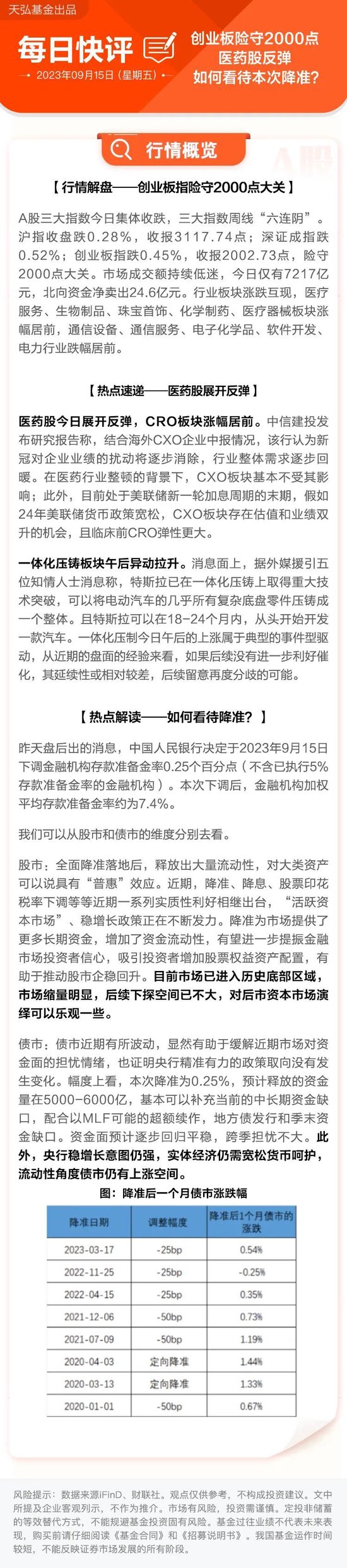 每日快评|创业板险守2000点,医药股反弹,如何看待本次降准?