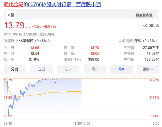 9月14日晚间,通化金马发布股票异动公告称,公司在研治疗阿尔茨海默症(俗称“老年痴呆”)国家I.I类相关新药引起市场广泛关注,提醒投资者注意二级市场炒作风险。