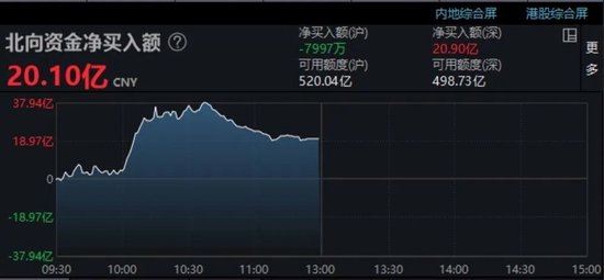 北向资金半天净买入20亿 汽车产业链掀涨停潮