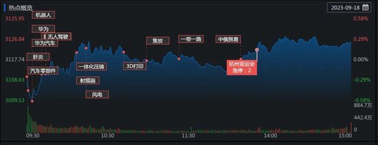 周一(9月18日),A股三大股指震荡上行,全线飘红。截至收盘,上证指数涨0.26%报3125.93点,深证成指涨0.55%报10200.04点,创业板指涨0.89%报2020.47点;两市合计成交金额6985亿元,北向资金净买入额28.29亿元。总体上看,两市个股涨多跌少。其中,涨停个股达53只,跌停个股达14只。