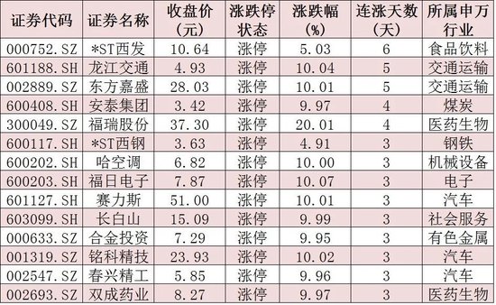 表:连续上涨3日且今日收盘涨停个股情况: