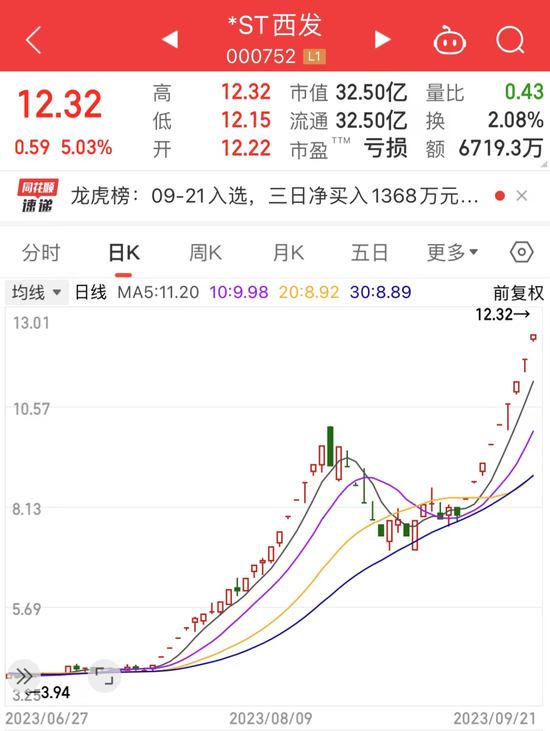 一批ST股悄然走强,*ST西发便是其中最惊艳的1只,该股今日再次涨停,9月11日以来连续录得9个涨停板,成为同一时间段涨停次数最多的股票。目前,公司最新收盘价创五年来新高,年内累计涨幅扩大至203.45%。