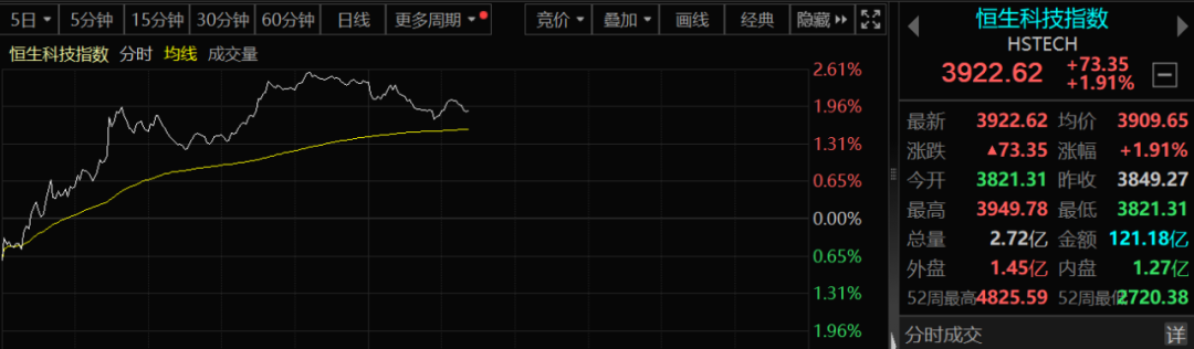 今天,港股市场的表现令人意外。因为,隔夜美股大跌,美联储的息口方向非常不让人乐观。不过,一向跟着外围走的港股市场今天却出现了大涨,恒生科技指数一度大涨近3%,后涨幅略有收窄,但涨幅依然非常可观。