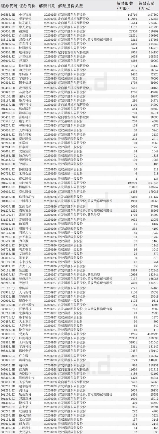 事实上,上周(9月18日-9月22日),解禁总市值也超过1400亿元。就整体解禁规模来看,最近几个月都是解禁高峰期。