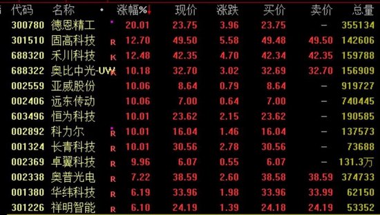 机器人概念盘中强势拉升,截至收盘,德恩精工“20cm”涨停,固高科技、禾川科技涨超12%,奥比中光涨逾10%,远东传动、恒为科技、科力尔、长青科技等涨停。