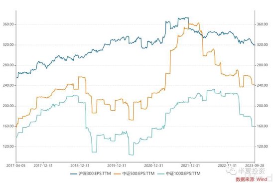 沪深300,中证500和中证1000的盈利,比高点分别下降了15%,30%,30%