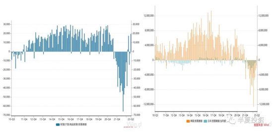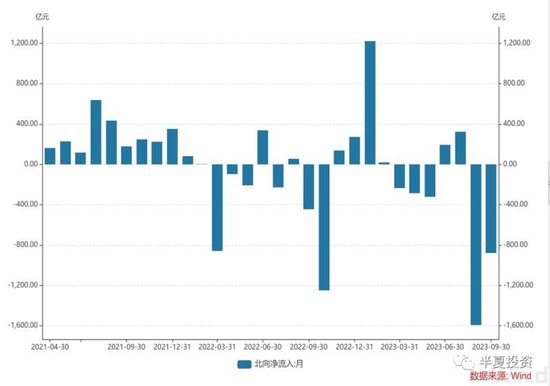 2,外资通过北向和QFII减持A股+国内资金南向流入港股的部分。这个部分大幅波动,年初一度大幅流入千亿,最近的2个月大幅流出平均大于1000亿。但2023年全年基本变化不大。