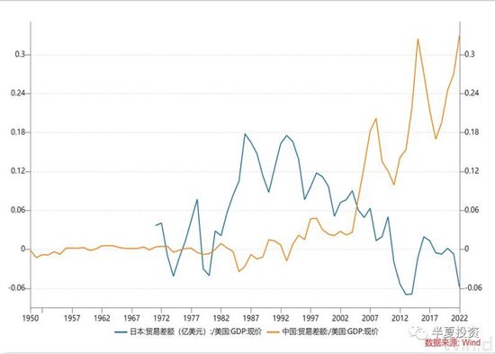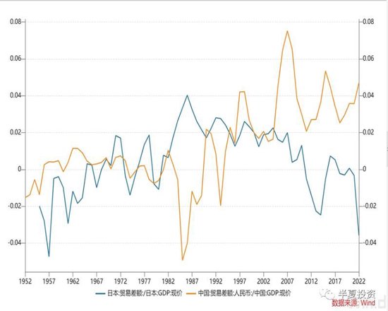 从更长周期的比较来看,中国的顺差无论跟本国GDP比较,还是跟美国GDP比较,都超越了日本巅峰时期。