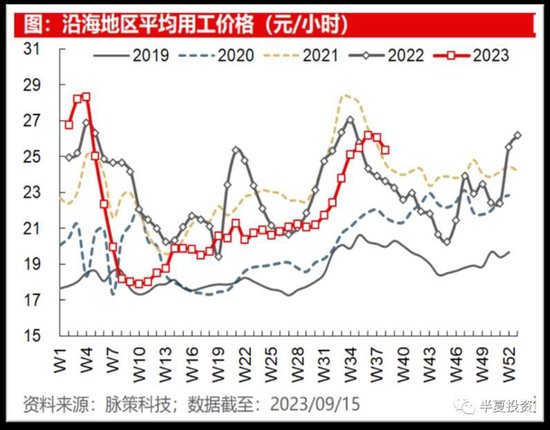 很多人质疑统计局8月失业率的下降,但市场化机构统计的沿海用工价格,今年4月还在过去5年最低水平附近,最新已经上升到过去5年的最高水平。