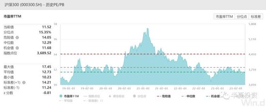 主流指数沪深300的估值也已经下降到历史低位。