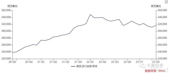 历史上,商品和服务消费比较同步,这一波不同步。因为疫情限制服务业展业,美国的耐用消费品先起来,也下下滑。服务消费后起来,也后下滑。2023年最新的情况,商品消费下滑叠加去库存,美国的进口已经同比下滑10%以上,美国的商品需求下降对海外的拖累,已经实现了大部分。