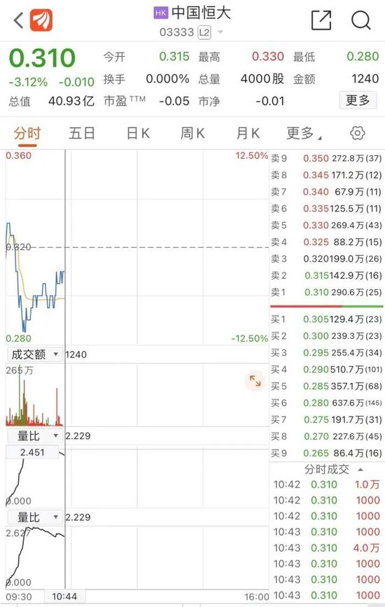 中国恒大一度大跌10%
