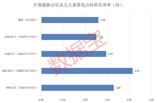 上证指数最新市净率为1.29倍,低于998.23点、1664.93点、2638.3点时的市净率。