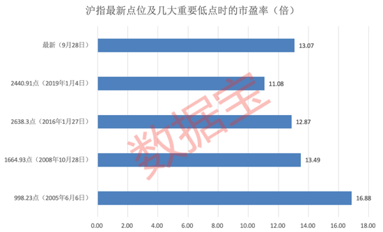 估值:与历史上几个重要的低点相比,上证指数最新市盈率为13.07倍,低于998.23点、1664.93点时的市盈率。