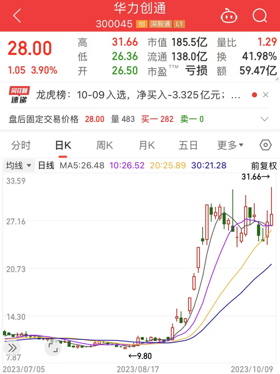 卫星通信概念龙头华力创通盘中一度涨超17%,股价创历史新高,收盘股价大幅回落,涨幅收窄至3.9%。