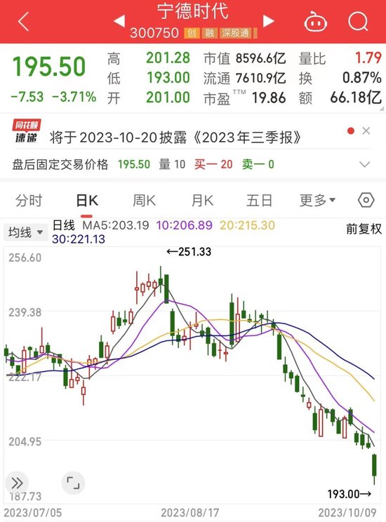 新能源赛道的龙头宁德时代成交66.18亿元居首,该股今日下跌3.71%,盘中股价创两年来新低,最新A股市值不足8600亿元,收盘价较历史高点回撤48.74%。