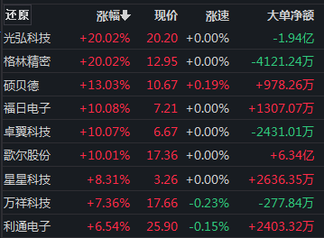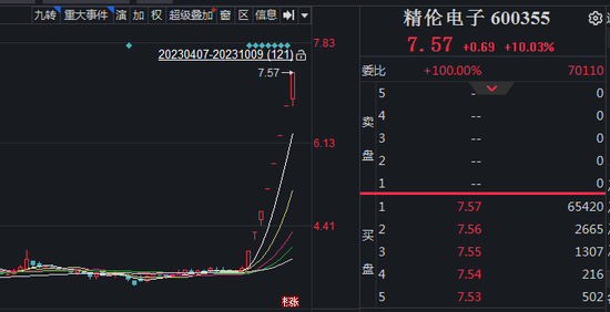 此外,短线资金聚焦,高位抱团股继续走强,精伦电子走出八连板,华映科技、好上好4连板。