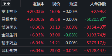 减肥药概念持续活跃,昊帆生物、常山药业(维权)20cm涨停。