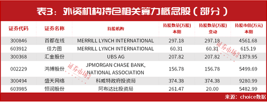 从相关算力公司披露的最新一期股东持仓来看,就有众多外资机构增仓的身影,其中,不乏一家外资机构持仓多只算力概念股,如美林国际(Merrill Lynch International),在上市公司披露的今年二季度末股东持仓中,其就现身首都在线、佳力图等算力概念股前十大流通股股东,截至二季度末,美林国际以297.18万股的持仓量新进成为首都在线第六大流通股股东;以60.31万股的持仓量新进成为佳力图第十大流通股股东。