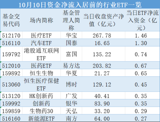 行业ETF方面,多只跟踪医药医疗、汽车零部件板块的ETF受到资金青睐,霸榜资金净流入榜单前列。