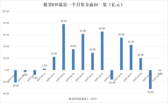 受外部局势动荡等多方面影响,10月以来A股延续震荡,避险情绪也笼罩在股票ETF市场,继10月9日资金净流出31.82亿元之后,10月10日资金继续流出1亿元。