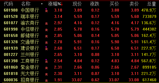 保险、银行、券商板块今日强势拉升,截至收盘,银行板块方面,中国银行、瑞丰银行涨逾3%,中信银行、交通银行、建设银行、工商银行等均涨超2%;