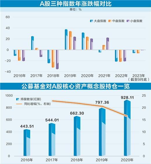 进入2017年后,世界经济艰难复苏,国内经济下行压力依然较大。在经济下行周期中,龙头企业的盈利能力、抗风险能力均较中小企业更胜一筹,因此成为大资金眼中的“珍宝”。公募基金集体增持A股核心资产,并出现“基金抱团”的现象,对万得核心资产成分股的持股数量由2016年末的433.51亿股提升至2020年末的928.11亿股,增幅达到114%。