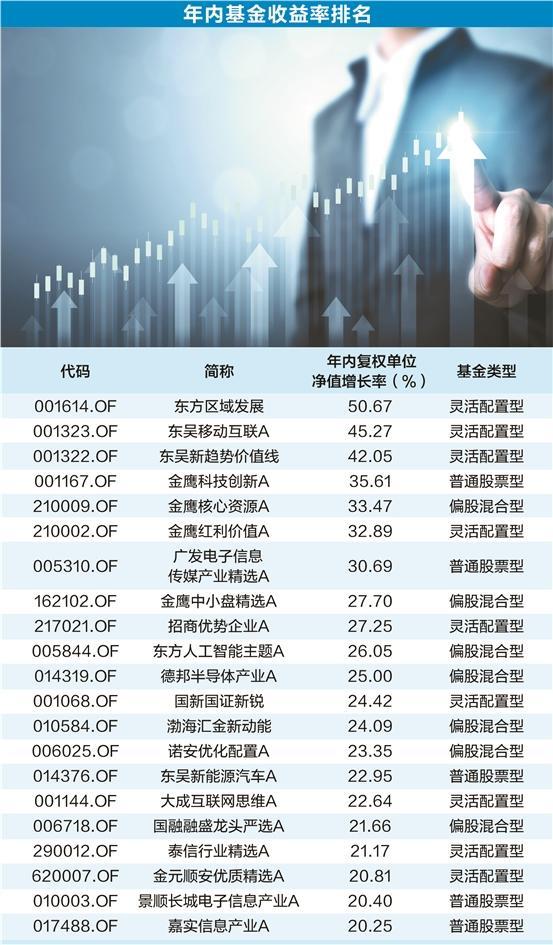基金经理周思越管理的东方区域发展,今年以来收益率达到50.67%,领跑全市场基金。今年一季度,东方区域发展重点布局了信息技术行业,二季度将投资方向转向了白酒股与啤酒股。