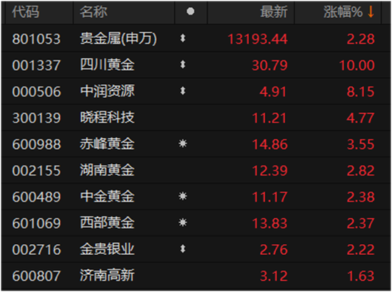 受中东局势紧张影响,黄金、原油价格近期持续走强,带动相关板块逆势升温。通源石油早盘20%幅度涨停,四川黄金、贝肯能源、中曼石油等均触及涨停。