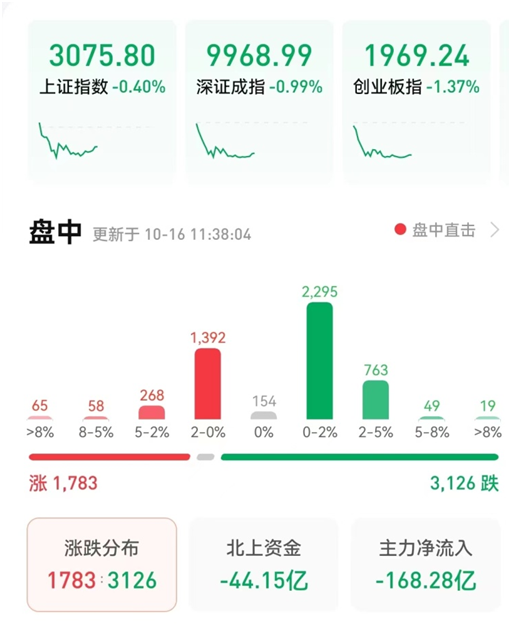 今日早盘,A股市场延续弱势格局。三大股指震荡走低,深证成指再度跌破万点大关,盘中最低探至9950.53点,创下年内新低。