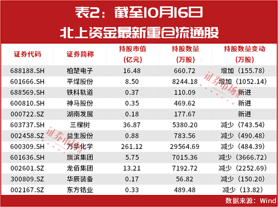 不过,在这些QFII加仓的同时,北上资金的态度却出现了分歧,如截至目前,香港中央结算有限公司共出现在12家公司的前十大流通股股东名单,相比今年二季度末,其中有3家公司获得新进重仓、2家获得加仓、7家遭遇减仓,万华化学就在其减仓的阵营(见表2)。