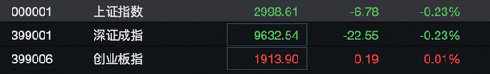 10月20日,上证指数低开0.33%,竞价跌破3000点,刷新2022年11月以来新低。随后沪指一度震荡走高翻红。截至发稿,沪指跌0.23%,报2998.61点;深证成指跌0.23%,报9632.54点;创业板指涨0.01%,报1913.90点。