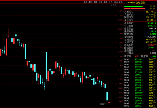 今日早盘,A股惯性低开,上证指数开盘跌破3000点整数大关,创近1年来新低,深证成指、创业板指等则再创3年半来新低。