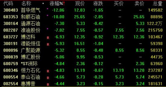 石油、有色、化工、电力、钢铁、燃气等资源股今日集体下挫。截至收盘,石油板块方面,首华燃气跌约12%,和顺石油跌停,通源石油、准油股份(维权)跌超7%。