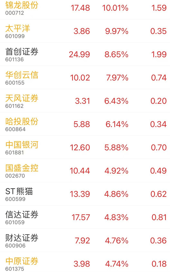 受汇金增持利好消息的提振,券商股今日走势活跃,午后再度拉升。截至收盘,锦龙股份、太平洋涨停,首创证券涨超8%,华创云信涨近8%,天风证券、哈投股份、中国银河、国盛金控(维权)等纷纷跟涨。