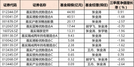 单独看三季度,谭丽的基金表现还不错,嘉实价值臻选混合小幅上涨2.05%,亏损最大的是嘉实价值优势混合C,亏损2.08%。