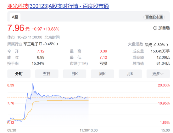 6G概念早间一度放量逆势涨近3%,连续第4日上涨,板块指数逼近历史最高点,半日成交接近昨日全天成交。亚光科技一度触及20%涨停,创半年多来新高;移远通信则秒速涨停,沃特股份亦不到10分钟封死涨停。