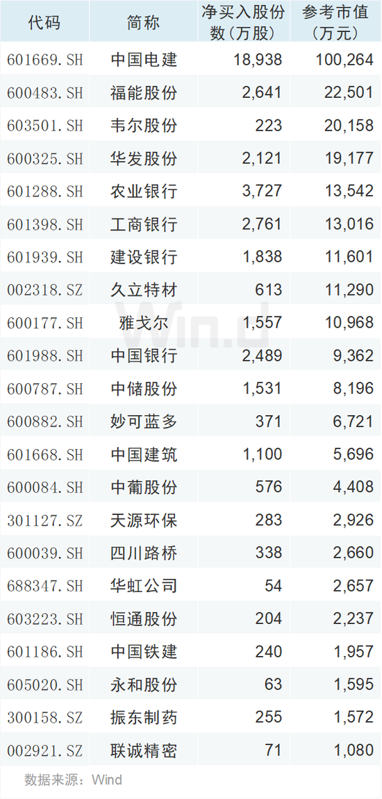 其中,中国电建大股东增持金额超10亿元,位居首位;福能股份、韦尔股份、华发股份、农业银行、工商银行、建设银行、久立特材、雅戈尔等公司大股东增持金额均超1亿元。